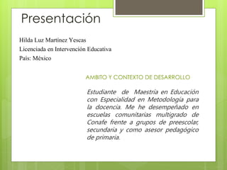 Este documento describe un plan para promover el uso de Recursos Educativos Abiertos (REA) entre líderes educativos que trabajan en escuelas rurales en México. El plan incluye crear un blog y foros de discusión en Facebook para compartir materiales educativos como actividades, estrategias y recursos didácticos. El objetivo es mejorar la calidad de la educación en estas comunidades al brindar a los líderes acceso a más información y apoyo. El plan detalla las acciones, fechas, responsables y métodos de evaluación para implementar este