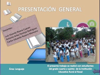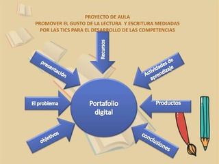 Este documento describe un proyecto de aula para promover el gusto por la lectura y la escritura en estudiantes mediante el uso de las TIC. El proyecto tiene como objetivo fortalecer las habilidades comunicativas de los estudiantes utilizando recursos digitales como videos, programas educativos y Word. El cronograma de actividades incluye presentaciones de videos, salidas de campo, prácticas de lectura y escritura con diferentes programas. Se espera que los estudiantes mejoren en la interpretación de textos, composición de cuentos y
