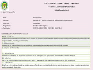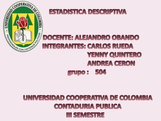 Este documento contiene las hojas de vida de tres estudiantes de contaduría pública y conceptos sobre estadística descriptiva como desviación media, varianza, desviación estándar, coeficiente de variación y regresión lineal. También incluye ejemplos de cálculo de estas medidas y su aplicación en la estimación de pesos de niños.
