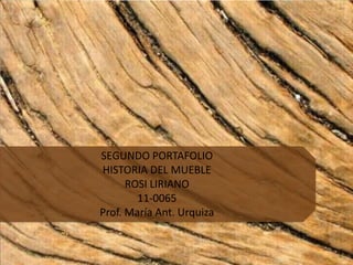 El documento resume los estilos y características de los muebles de diferentes épocas como el Estilo Regencia, Luis XV, Neoclasicismo, Arts & Crafts y diseñadores como William Morris y Philip Webb. Describe tipos de muebles como mesas, cómodas y sillas y sus características en cada estilo. En 3 oraciones.