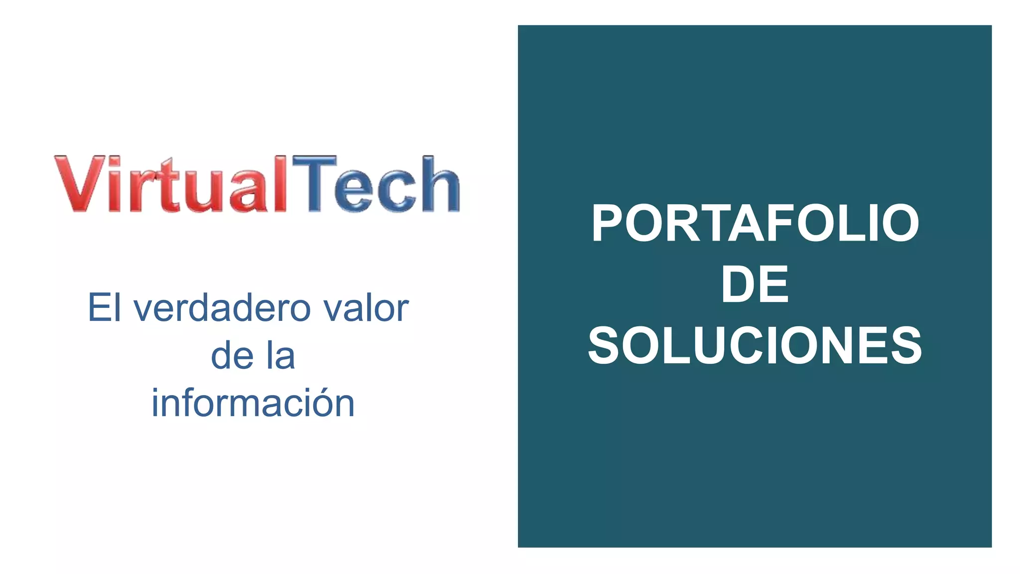 Este documento presenta a Virtualtech, una empresa mexicana de servicios de TI que ofrece soluciones de infraestructura para virtualización, protección de datos, integración en la nube, y recuperación ante desastres. La empresa cuenta con certificaciones de VMware, Microsoft, Dell y otras compañías líderes en el sector. Virtualtech busca brindar soluciones escalables e integrales para ayudar a las empresas a mejorar la continuidad del negocio y reducir costos.