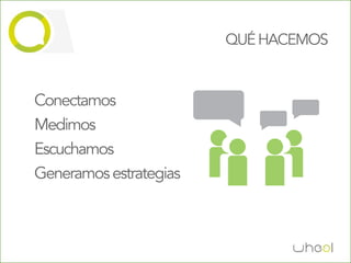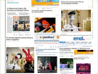 Este documento describe los servicios de una agencia de marketing digital. Ofrece servicios como gestión de redes sociales, monitoreo de métricas, campañas estratégicas en línea y fuera de línea, y marketing digital. También detalla algunos de sus clientes y campañas exitosas, como para el concierto de 31 Minutos. La agencia busca conectar marcas con audiencias a través de herramientas digitales para generar estrategias efectivas.