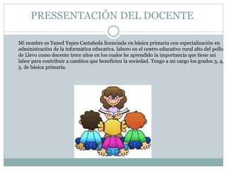 El documento presenta una propuesta para mejorar las habilidades de lectoescritura de los estudiantes de grados 3, 4 y 5 de un centro educativo rural a través del uso de recursos digitales. Actualmente los estudiantes presentan dificultades en lectura, escritura y concentración, lo que afecta su rendimiento académico. La propuesta busca incorporar prácticas educativas con TIC, actividades extraescolares de lectura y escritura, y motivar el uso de recursos digitales para mejorar las competencias de los estudiantes.