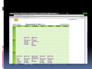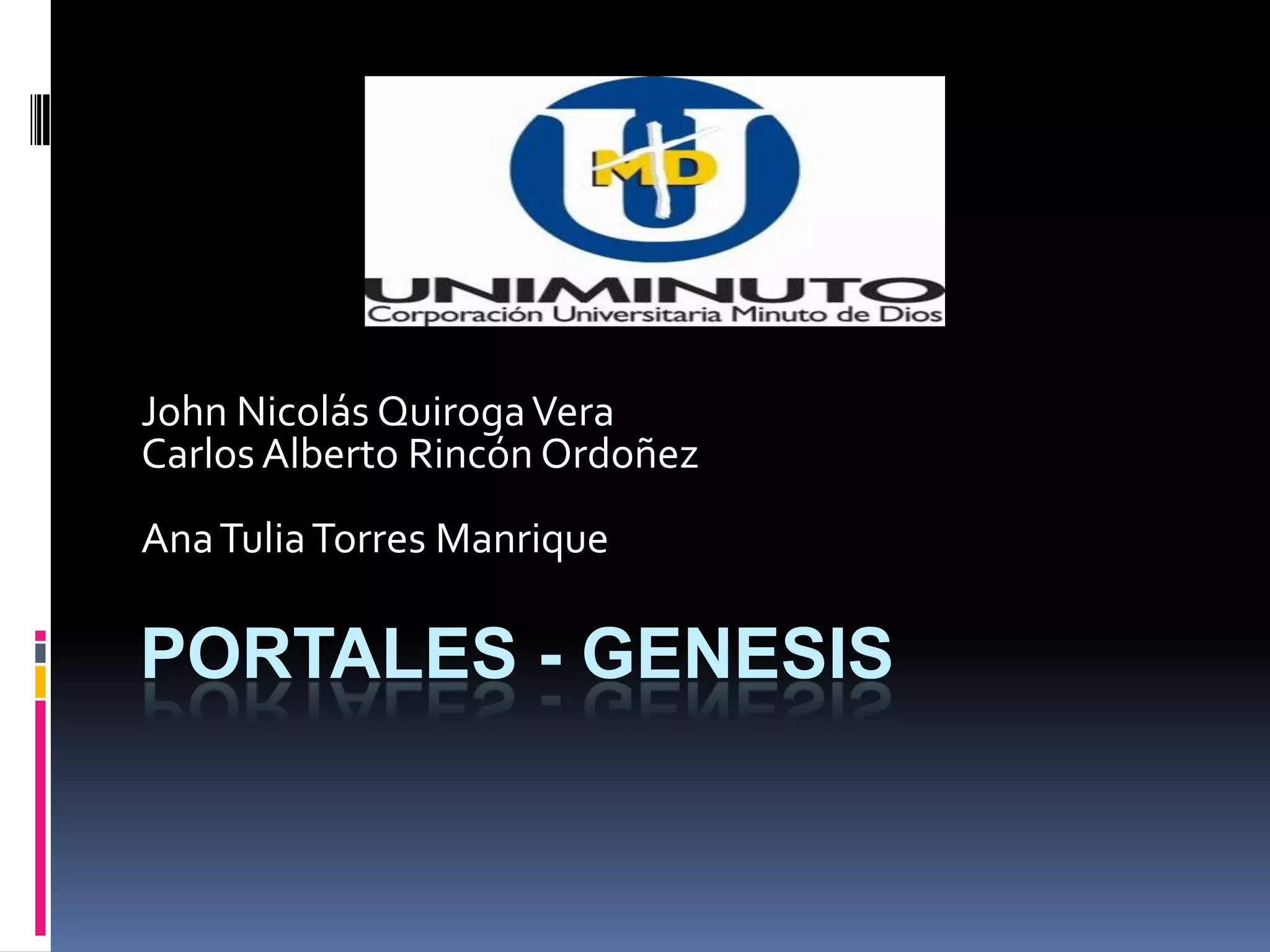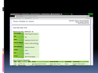 El documento presenta información sobre la misión, visión, reglamentos estudiantiles y académicos, homologación, régimen académico, asistencia, evaluación, calificación, titulación, pérdida de materias, cambio de clave en Genesis y cómo visualizar horarios y notas en Genesis de la Universidad UNIMINUTO.