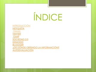 El documento presenta una introducción al portafolio de trabajos realizados por Ignacio de Lucas Torres durante el curso 2011-2012. Incluye resúmenes de trabajos sobre netiqueta, creación de cuenta Gmail, Twitter, GIMP, sociedad 2.0, Edmodo y blogger. Ignacio evalúa cada trabajo, expresando sus opiniones y el esfuerzo dedicado.