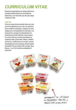 Este currículum describe la trayectoria profesional de Daniel Vargas Brochs en diseño gráfico, web y animación desde 1992 hasta la actualidad. Ha trabajado creando material promocional y de imagen para empresas como Leche Pascual, Financial Technologies, Cartoon Network y Cirugía Gráfica. También ha colaborado en proyectos audiovisuales como cortometrajes y videoclips musicales.