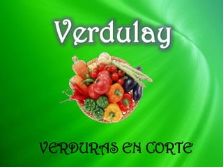 Verdulay es una empresa que corta y vende verduras de forma orgánica para ahorrar tiempo a las amas de casa. Su misión es ofrecer verduras cortadas de manera natural y su visión es ser reconocida en el municipio de Silvania en 2015 por su calidad y servicio en el mercado de hortalizas.