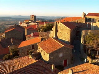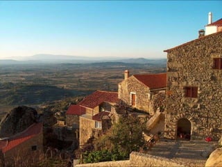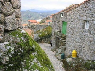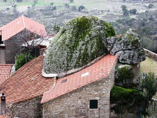 Monsanto es una antigua aldea fortificada al sureste de la Serra da Estrela en Portugal, construida entre enormes rocas de granito. Algunas casas tienen una sola losa de piedra como techo. Destaca la Torre de Lucano del siglo XIV y la aldea fue reconocida como "la más portuguesa de Portugal" en 1938. Las callejuelas talladas en la roca apenas han cambiado en siglos y ofrecen magníficas vistas del castillo y capilla románica en ruinas.