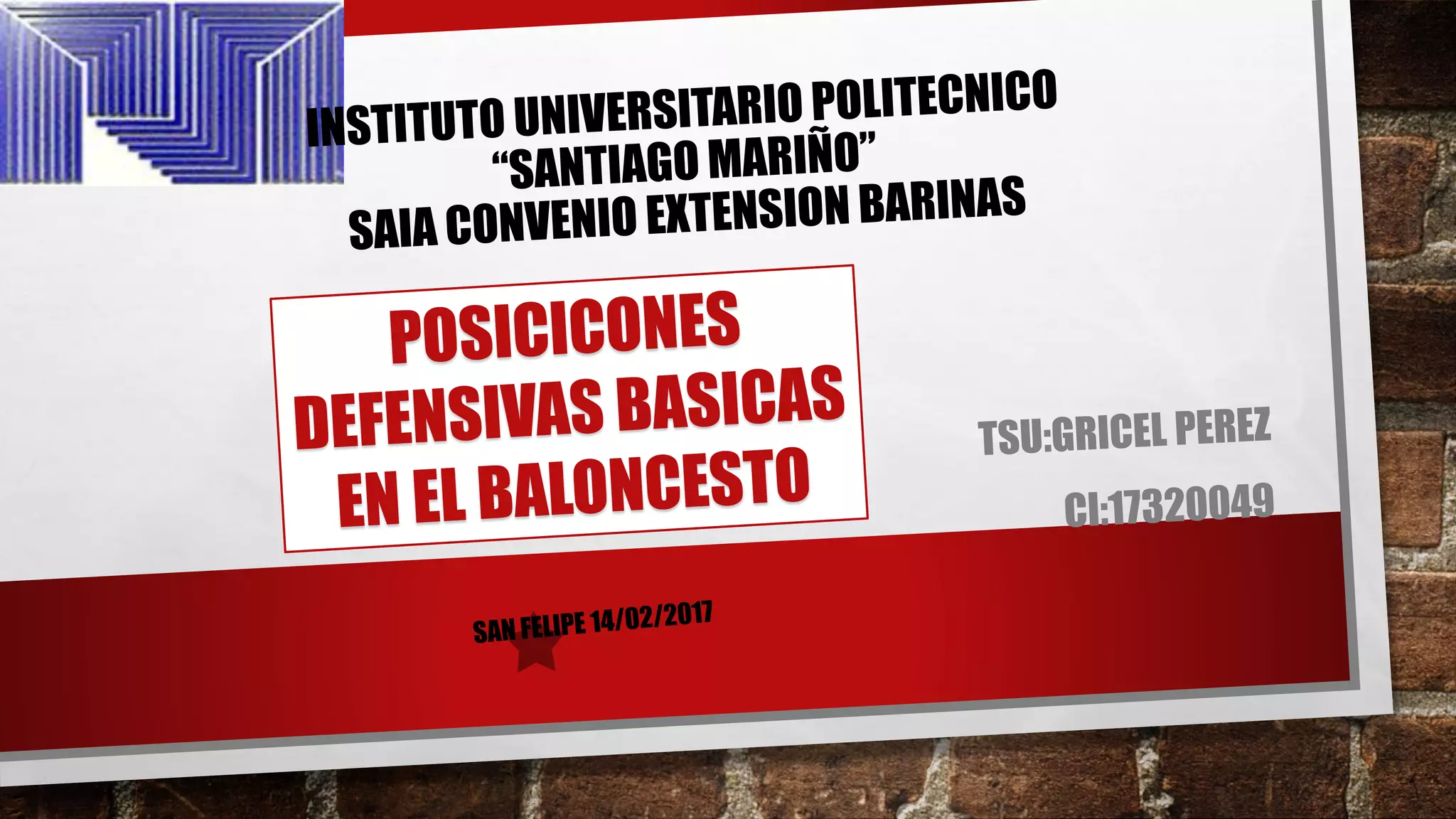 Este documento describe diferentes posiciones defensivas básicas en baloncesto. Incluye la posición básica defensiva con el centro de gravedad bajo y las piernas separadas, la defensa al hombre sin balón colocándose entre el balón y el atacante, y la defensa del jugador con balón lejos de la canasta con los brazos obstaculizando cualquier tiro o pase. También cubre la defensa cerca de la canasta con los pies separados y los brazos semiflexionados para obstaculizar cualquier tiro.