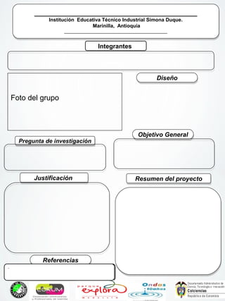 Este documento describe un proyecto de estudiantes sobre techos verdes y recolección de agua lluvia para uso doméstico. El proyecto busca implementar un sistema de riego que permita utilizar el agua lluvia recolectada para regar cultivos en techos verdes. El proyecto comenzó hace dos años y ahora busca mejorarlo agregando un mecanismo de recolección de agua. Los resultados incluyen una bitácora, participación en una feria científica y una mención de honor por su modelo de techos verdes.