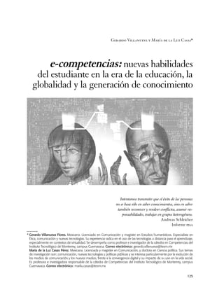 Este documento analiza las nuevas competencias (e-competencias) que requieren los estudiantes y futuros profesionales en la era de la educación globalizada y la generación del conocimiento. Explora conceptos como el autoaprendizaje, el contacto a distancia y las redes sociales, y concluye reflexionando sobre el papel de la educación en desarrollar estas competencias para enfrentar los retos del siglo XXI.