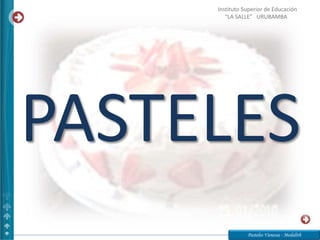 Este documento presenta varias recetas de postres, pasteles, bebidas y dulces preparados por Vanessa Quispe Vidal y Medalith Salas Quillahuamán del Instituto Superior de Educación Público La Salle en Urubamba. Incluye detalles sobre los ingredientes y pasos para preparar cada receta. El documento también ofrece consejos sobre cómo alisar la superficie de la masa para pasteles y el método correcto para batir los huevos y el azúcar.