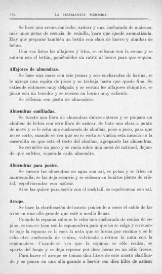 El documento presenta recetas para varios tipos de dulces tradicionales argentinos como alfajores, babarois y buñuelos. Describe los ingredientes y los pasos para preparar cada uno, incluyendo alfajores de huevo, miel y embetunados, babarois de naranja, fresas y damasco, y buñuelos de arroz con queso, zapallo y de las monjas Claras. El objetivo es proporcionar instrucciones detalladas para hacer una variedad de postres típicos de la repostería arg