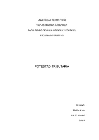 La potestad tributaria la ejerce el Estado de acuerdo a la constitución, permitiendo establecer obligaciones pecuniarias a los contribuyentes. Tanto la nación, estados y municipios poseen potestad tributaria. Esta potestad es delegada a los municipios por el poder nacional y les permite crear, recaudar y fiscalizar sus propios tributos de acuerdo a la ley. Existen limitaciones a la potestad tributaria municipal establecidas en la constitución para evitar interferencia de otros entes del poder público en las decisiones tributarias municipales