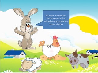 Un niño encuentra un mago que le da unas ramitas mágicas para ayudar a los animales y su familia durante una sequía. El niño lleva las ramitas a su casa y, gracias a su magia, aparece comida y agua para los animales y su familia, solucionando el problema de la falta de recursos causado por la sequía.