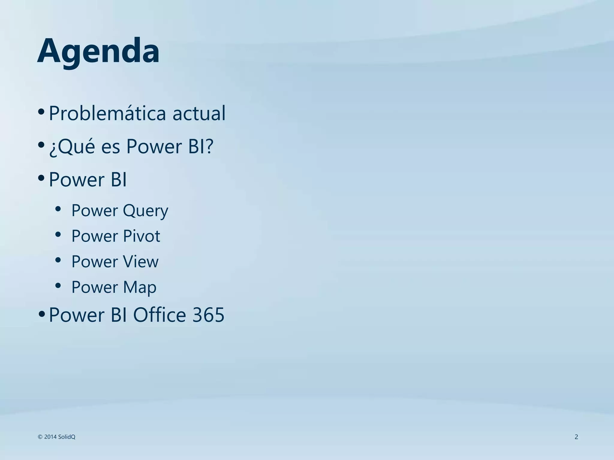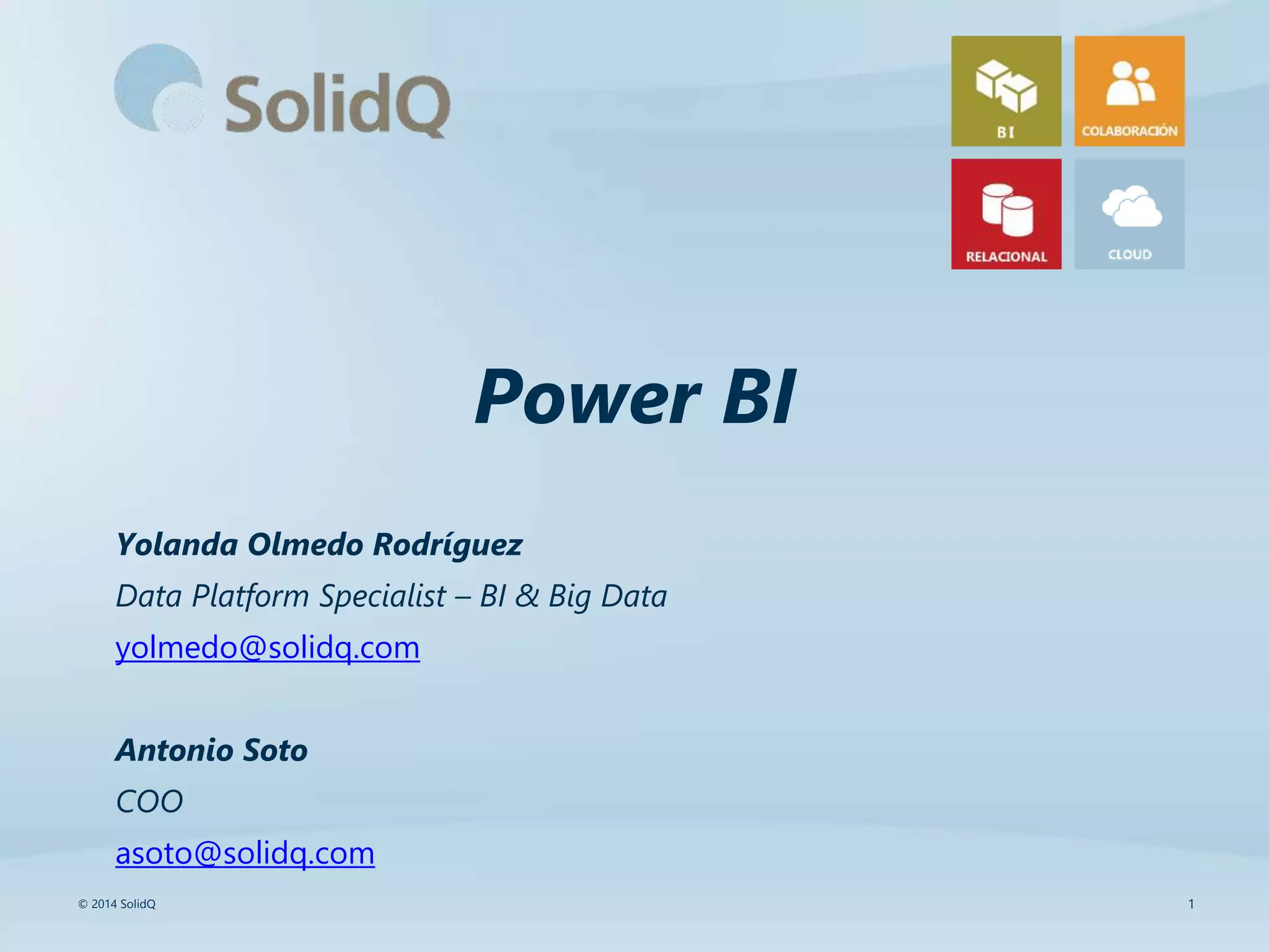 Este documento presenta Power BI como una solución para que los usuarios definan sus propios modelos de datos y realicen análisis de forma autónoma. Power BI incluye complementos para Excel que permiten extraer, transformar y cargar datos desde múltiples fuentes, crear modelos analíticos con grandes cantidades de datos en Power Pivot, visualizar datos de forma interactiva en Power View, y analizar información geoespacial en Power Map. Además, la información analítica puede publicarse en la nube a través de Office 365 para compartirla de