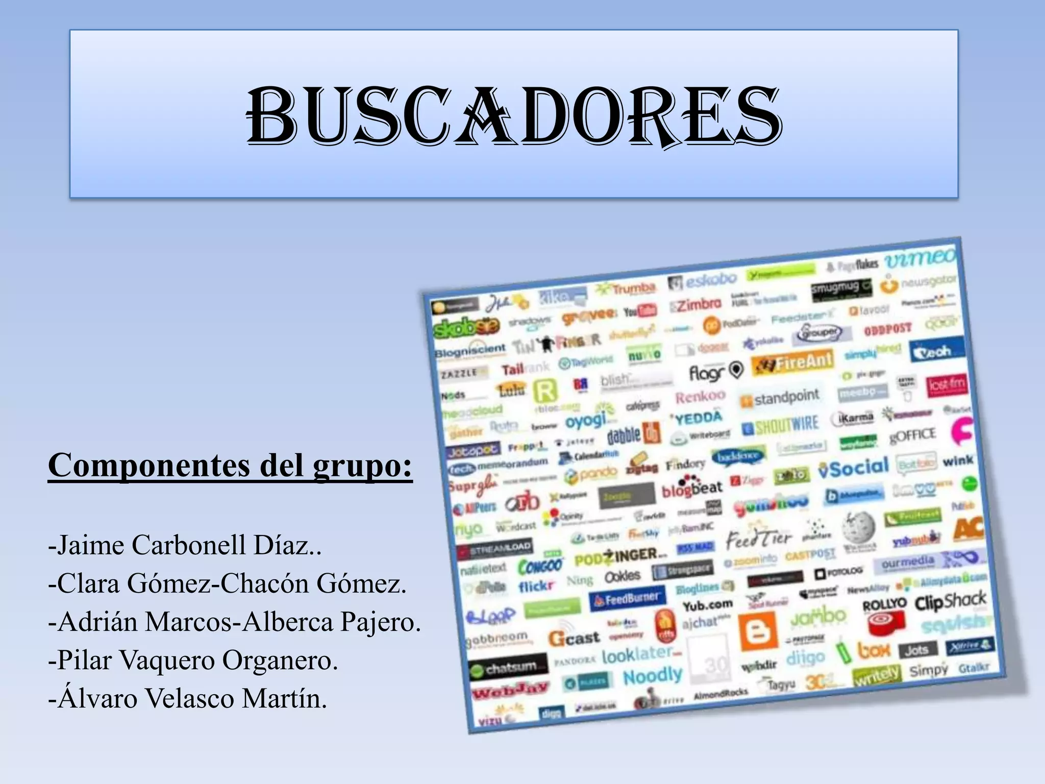 El documento proporciona información sobre la historia y características de los principales buscadores web. Explica que los primeros buscadores como Wandex y WebCrawler permitieron realizar búsquedas por temas o palabras clave respectivamente. Más tarde, la introducción de directorios y el ranking de resultados mejoraron la experiencia de los usuarios. Actualmente, Google es el buscador dominante con más del 85% del mercado, seguido de Yahoo y Bing.