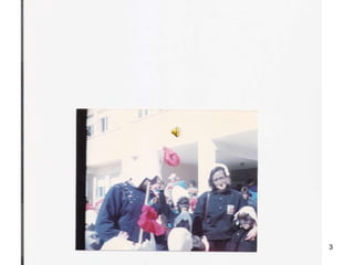 Este documento presenta una recopilación de imágenes de diferentes agrupaciones carnavalescas a lo largo de 20 años en el colegio de la autora. Se muestran fotos de los distintos cursos disfrazados para el carnaval con temáticas como los niños de la India, las cotorras, los quintos, los ingleses, los caramelos, los cocineros y los difuntos, entre otros. También incluye recortes de prensa sobre las presentaciones de estas agrupaciones y carteles anunciando su participación en eventos carna
