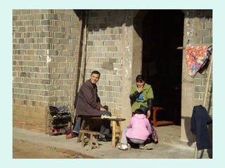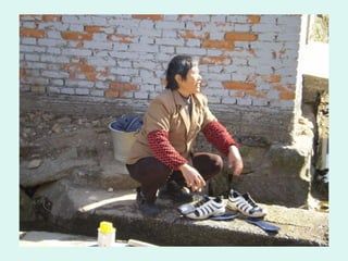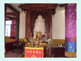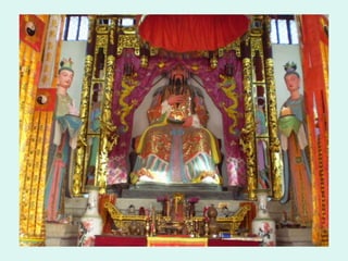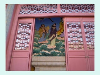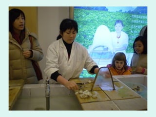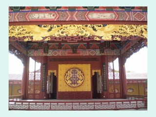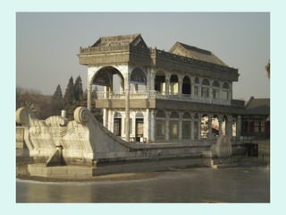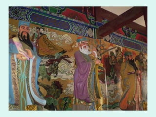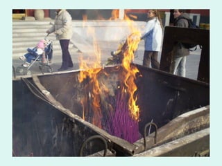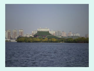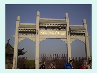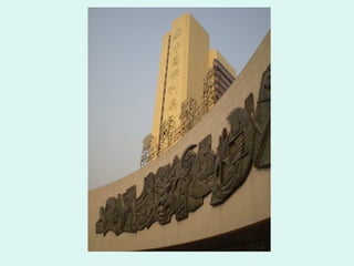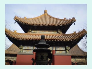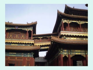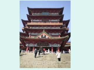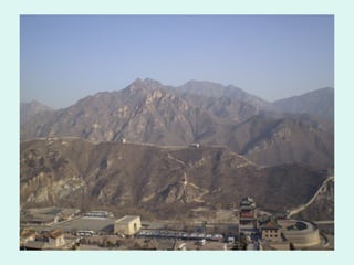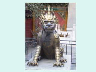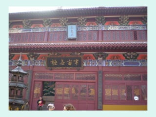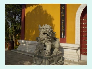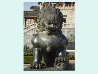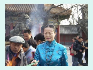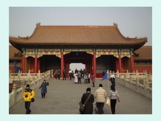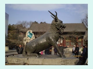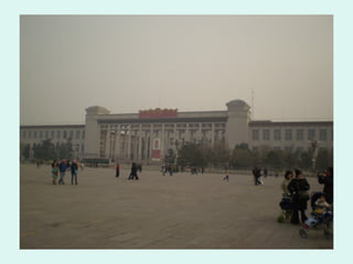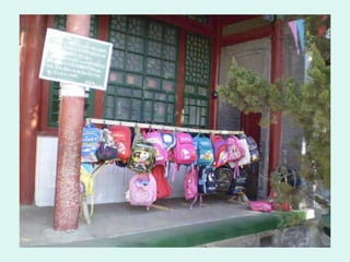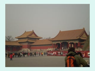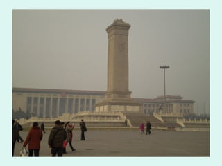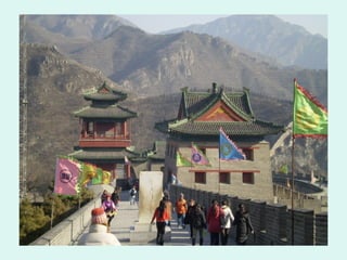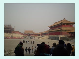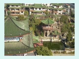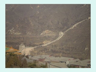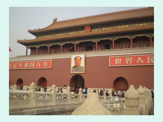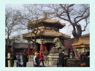 El documento presenta una lista de temas relacionados con China, incluyendo mapas, ciudades principales como Pekín, pueblos pobres, templos, escultura, monumentos como la Ciudad Prohibida, la Plaza de Mao, museos sobre seda, idioma chino, comida china, paisajes, deportes, bandera, animales y el horóscopo chino.