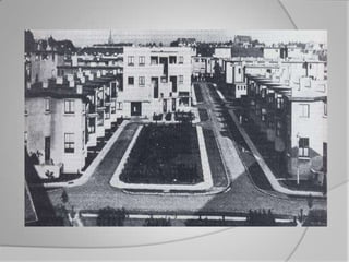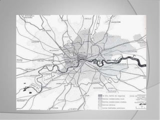 El documento resume la historia y principios del Congreso Internacional de Arquitectura Moderna (CIAM). El CIAM se fundó en 1928 con el objetivo de promover los ideales de la arquitectura moderna a través de conferencias y publicaciones. Celebró varios congresos entre 1928 y 1959 donde se discutieron temas como la vivienda social, la planificación urbana y la Carta de Atenas, la cual propuso principios de zonificación funcional para las ciudades. El CIAM tuvo gran influencia en la difusión de las ideas de la arquitectura