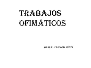 El documento presenta el currículum de Gabriel Pardo Martínez, incluyendo información sobre su educación en el Colegio Alborada y su experiencia laboral. También incluye varios certificados como el mejor gamer y muestra trabajos de ofimática realizados como tablas y gráficos en formato Excel.