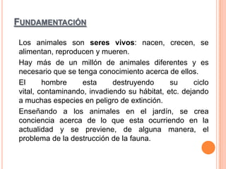 Este documento presenta una propuesta didáctica para enseñar ciencias naturales y lengua a estudiantes de nivel inicial utilizando el software MicroMundo Pro. La propuesta busca que los estudiantes conozcan las diferentes clases de animales, sus características y las cinco vocales. Incluye actividades como preguntar sobre conocimientos previos de los animales, mostrar imágenes y videos de los tipos de animales, una visita guiada al zoológico, y la creación de pantallas en MicroMundo Pro para evaluar los aprendizajes.