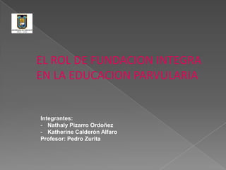 El rol de Fundación Integra es lograr el desarrollo integral de niños y niñas desde los 84 días de vida hasta los 5 años de edad que viven en situación de pobreza y vulnerabilidad, a través de un programa educativo de excelencia que incorpora a las familias y la comunidad. La Fundación se enfoca en brindar ayuda a niños y niñas de sectores económicamente vulnerables.