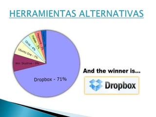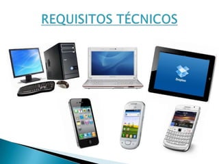 Este documento proporciona instrucciones sobre cómo configurar y usar Dropbox. Explica que Dropbox permite almacenar y sincronizar archivos en línea entre computadoras y compartir archivos con otros. Proporciona los pasos para crear una cuenta de Dropbox y descargar la aplicación, así como sugerencias para usar Dropbox para crear una carpeta compartida de clase y almacenar archivos de forma segura.