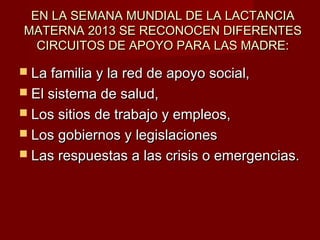 Durante la semana mundial de la lactancia materna, se enfatiza la importancia de las redes de apoyo para madres lactantes, incluyendo familia, sistema de salud y organismos gubernamentales. La OMS recomienda la lactancia materna exclusiva durante los primeros seis meses, subrayando sus beneficios tanto para el bebé como para la madre, así como para la comunidad. Se desmitifican creencias erróneas sobre la lactancia y se aconseja continuar amamantando hasta los dos años.