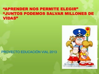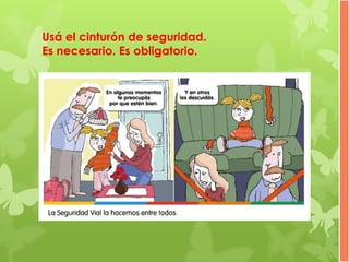 Este documento promueve una campaña de educación vial para promover el uso de cinturones de seguridad y prevenir accidentes, señalando que acciones simples como usar el cinturón pueden salvar vidas.