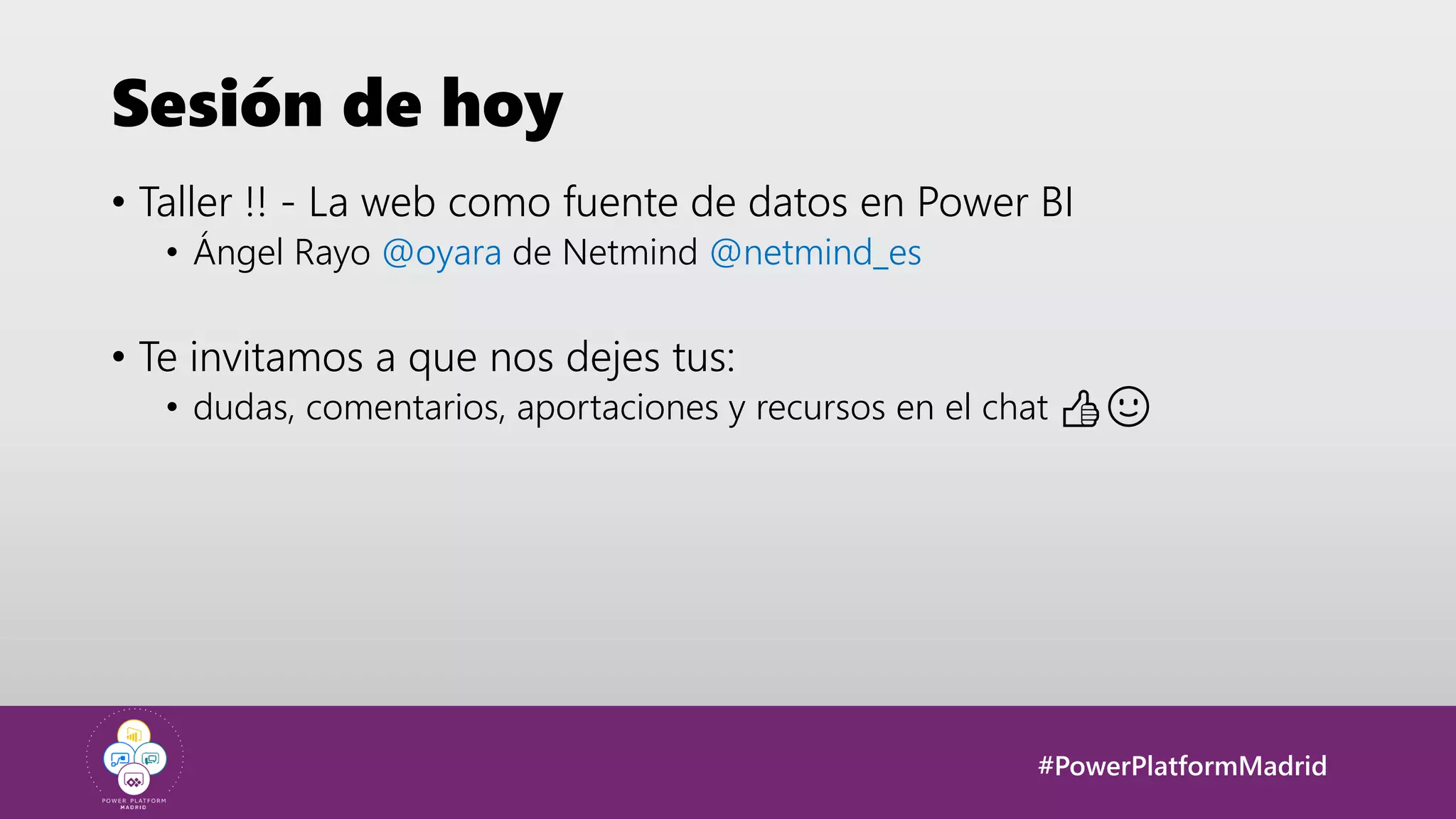 Este documento presenta una sesión sobre cómo usar la web como fuente de datos en Power BI. Explica brevemente la evolución de Internet y el crecimiento masivo de datos disponibles en línea. Luego, describe cómo Power BI puede usarse para consumir y analizar datos de varias fuentes en la web como Wikipedia, sitios de datos abiertos y APIs. Finalmente, invita a los asistentes a explorar ejemplos prácticos de extracción de datos de estas fuentes y a hacer preguntas.
