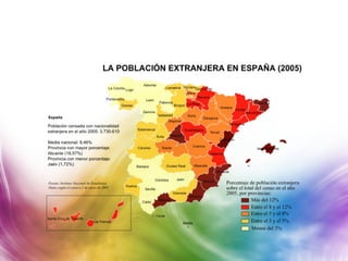 Este documento resume la evolución y características de la población española y sus cambios recientes. Explica que España ha pasado de ser un país de emigración a uno de inmigración debido al desarrollo económico. Analiza factores como la natalidad, mortalidad, esperanza de vida y cómo han impactado en el crecimiento de la población. También describe los movimientos migratorios internos como el éxodo rural de las zonas rurales a las ciudades, y la estructura de la población por edades, sexo