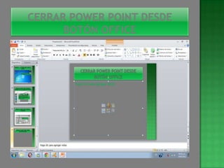 Damos clic enel icono de Microsoft office al final aparecerá un botón que dice “salir de power point ”Damos clic hay.