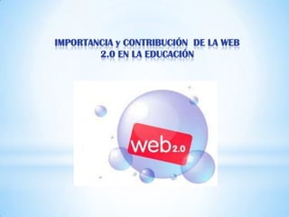 La web 2.0 ha revolucionado la educación al ofrecer nuevos recursos como wikis, blogs, redes sociales y videos que motivan a los estudiantes y mejoran la enseñanza. Características clave incluyen que la web es una plataforma social, flexible y participativa. Estos cambios han traído beneficios como una forma más dinámica de aprender y enseñar.