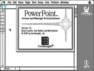 PowerPoint se ha utilizado ampliamente durante más de 30 años como una herramienta para presentaciones, reemplazando a las diapositivas de 35 mm. Aunque se usa comúnmente y ha mejorado la enseñanza, también ha recibido críticas como que reduce la oralidad, visibilidad y literalidad; sin embargo, se reconoce que es una herramienta útil cuando se usa de manera efectiva enfocándose en comprimir la información de manera atractiva y mantener la atención del público sin aburrirlo.