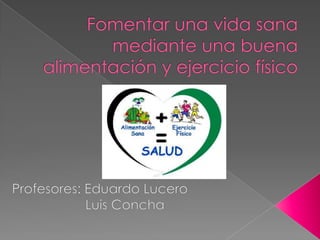 El documento describe una lección sobre una alimentación y ejercicio saludables. La lección comienza con una explicación de la importancia de una dieta balanceada y ejercicio regular. Luego, los estudiantes ven videos sobre una alimentación saludable y buenas prácticas de ejercicio, y completan un cuestionario en línea sobre el tema. La lección concluye con una discusión sobre los contenidos cubiertos.