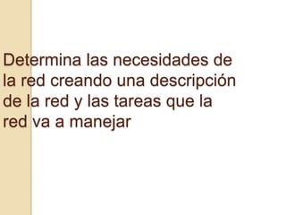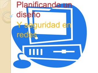 El documento describe los pasos para planificar y diseñar una red segura, incluyendo determinar las necesidades de la red, analizar la infraestructura existente, e identificar el hardware y software necesarios. Luego cubre la instalación física de la red, configurando estaciones de trabajo, router inalámbrico, e Internet. Finalmente, discute conceptos de seguridad como ataques de denegación de servicio, cracking de contraseñas, y formas de prevenirlos.