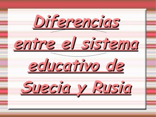 El sistema educativo de Suecia y Rusia comparten algunos aspectos como que la educación infantil no es obligatoria. Sin embargo, también hay diferencias significativas. En Suecia, los niños asisten a jardines de infancia desde los 12 meses hasta los 5 años, donde se enfatiza el aprendizaje a través del juego. En Rusia, los niños ingresan a la escuela a los 7 años para 11 años de educación. Suecia ha adoptado métodos más humanizados mientras que Rusia ha mantenido enfoques más estrictos y autoritarios.