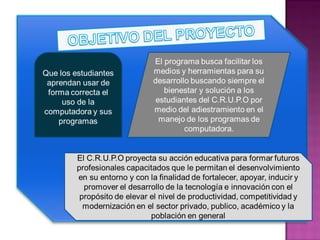 Este documento describe la historia del GRUPO en los años 60 y 70, cuando un grupo de profesores preocupados por la situación de los estudiantes graduandos emprendió una campaña para establecer una extensión universitaria en la región. En 1978, el grupo realizó argumentos a favor de los derechos de los estudiantes y la necesidad de una extensión. En 1981, se inauguró oficialmente la extensión universitaria. Para 2006, el GRUPO tenía una matrícula de más de 3,000 estudiantes.