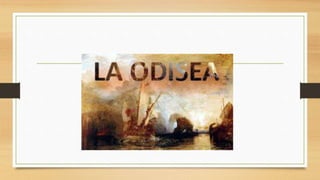 La Odisea es un poema épico griego atribuido a Homero que narra las aventuras de Ulises (también conocido como Odiseo) después de la guerra de Troya. Tras años de viajes y peligros, incluyendo encuentros con cíclopes, sirenas y dioses, Ulises finalmente regresa a su hogar en la isla de Ítaca, donde planea vengarse de los pretendientes que pretenden desposar a su esposa Penélope durante su ausencia. Con la ayuda de su hijo Telémaco y