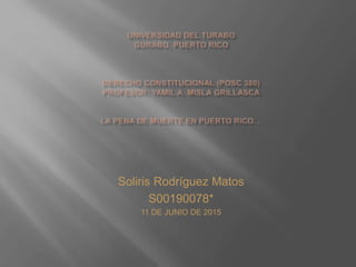 Este documento discute la pena de muerte en Singapur y Puerto Rico. Explica que Singapur adoptó medidas estrictas como la pena de muerte para delitos graves y la corrupción política que ayudaron a transformar al país de uno de los más violentos a uno de los más seguros y prósperos en Asia. También indica que Puerto Rico prohibió la pena de muerte en 1929 pero una ley federal de 1994 permitió su aplicación en casos federales.