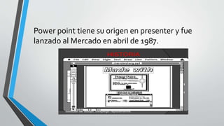 PowerPoint es un programa utilizado para realizar presentaciones en los ámbitos de negocios y educación. Tuvo su origen en Presenter y fue lanzado en 1987. Permite crear diapositivas con texto, gráficos, dibujos o videos para transmitir información de manera sencilla. Antes de realizar una presentación en PowerPoint, es importante planificar el contenido y propósito, adaptarlo al público objetivo y organizar la información de manera clara y concisa en cada diapositiva.