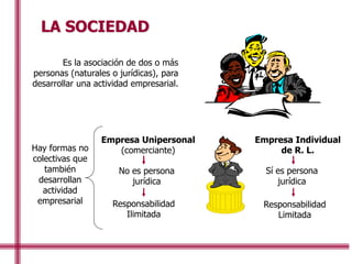 El documento describe la evolución histórica de la definición de sociedad en la legislación peruana desde 1902 hasta la actualidad. Consistentemente, la legislación ha definido a la sociedad como la asociación de dos o más personas para realizar una actividad económica en común, con el fin de obtener lucro y dividir las utilidades. La sociedad se constituye mediante un contrato que es inscrito en un registro público, lo que le otorga personalidad jurídica.