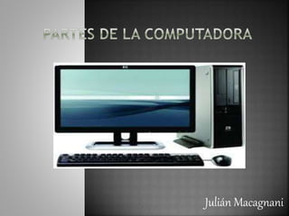El documento describe los componentes básicos del hardware y software de una computadora. En cuanto al hardware, se menciona que está compuesto por los dispositivos físicos como la CPU, la RAM, la ROM y los periféricos de entrada, salida y mixtos. En cuanto al software, se define como un conjunto de programas e instrucciones y se clasifica en software de base, de aplicación, y lenguajes de programación que permiten controlar el hardware y ejecutar tareas.
