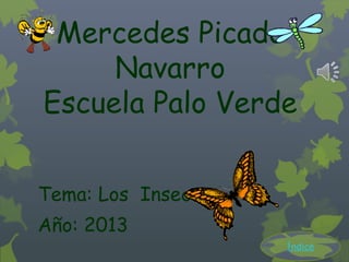 El documento resume las características principales de los insectos, incluyendo que pertenecen al reino animal, tienen cuerpo articulado dividido en cabeza, tórax y abdomen, se mueven a través de mecanismos neuronales y estructuras elásticas, habitan diversos lugares que les proveen aire, alimento y refugio, y se alimentan de hojas, madera, heces y cadáveres. También cubre su reproducción anfigonía, puesta de huevos y metamorfosis, y proporciona referencias.
