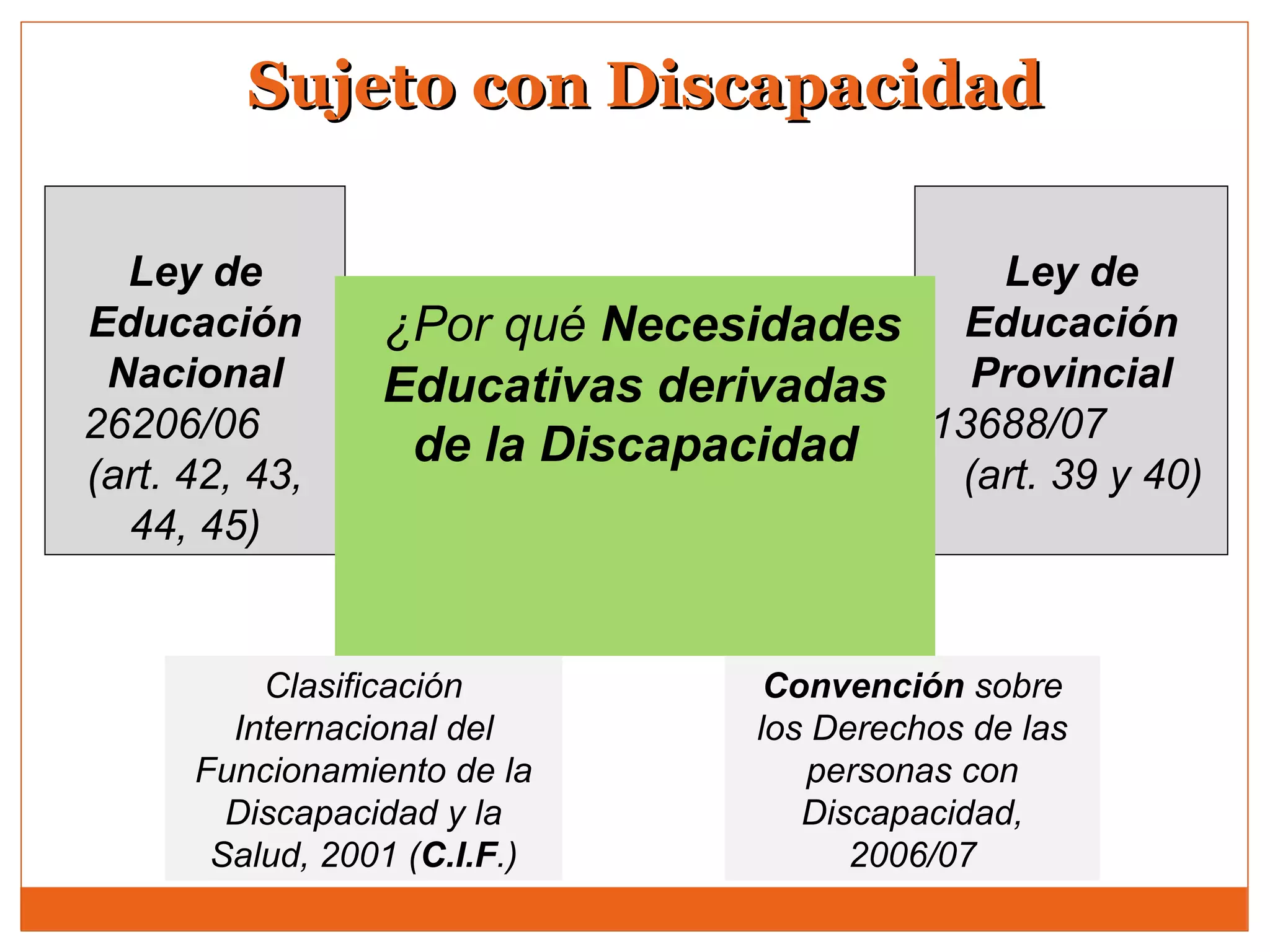 Este documento resume los principales paradigmas y modelos en educación especial, incluyendo el modelo social de discapacidad, la Convención sobre los Derechos de las Personas con Discapacidad, y la Clasificación Internacional del Funcionamiento de la Discapacidad y la Salud. Describe la estructura de la educación especial en Argentina y enfatiza la importancia de las trayectorias educativas integrales centradas en las necesidades y capacidades individuales de cada persona con discapacidad.