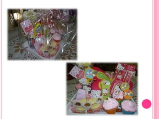 Este folleto promociona varias opciones para eventos y regalos personalizados, incluyendo desayunos, recuerdos, golosinas personalizadas, y tratamientos en un spa.