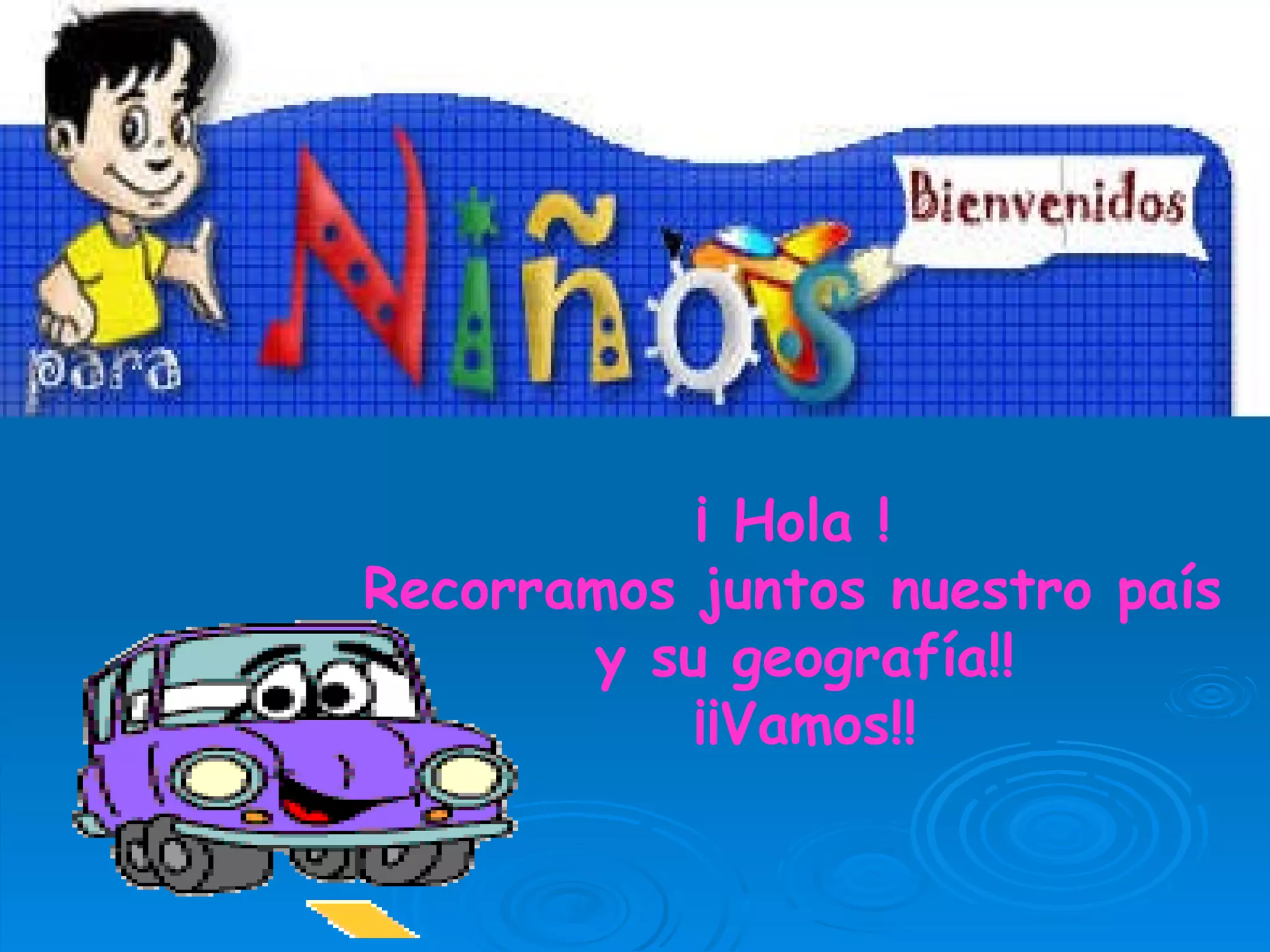 Este documento presenta una breve introducción a la geografía de Chile. Describe que Chile se encuentra en el continente de América del Sur y limita al norte con el Desierto de Atacama, al oeste con el Océano Pacífico, al sur con el Polo Sur y al este con la Cordillera de los Andes. La Cordillera de los Andes recorre todo el país y tiene un promedio de altura de 4.000 metros.