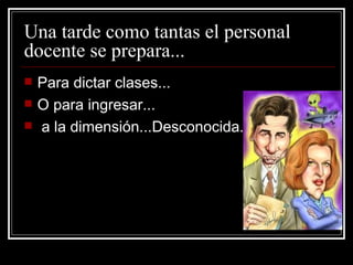 El documento describe una jornada típica de un profesor que debe dictar clases en 4CAD, incluyendo momentos de preparación, dudas sobre el horario y la sala de clases asignada, y finalmente el saludo a los estudiantes al comenzar la clase. Agradece a los profesores de 4to año por su dedicación diaria y compromiso con los estudiantes.