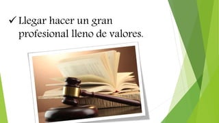 Quiero ser un profesional con valores que sea útil para la sociedad, aprender a valerme por mí mismo y corregir la mayoría de mis debilidades.